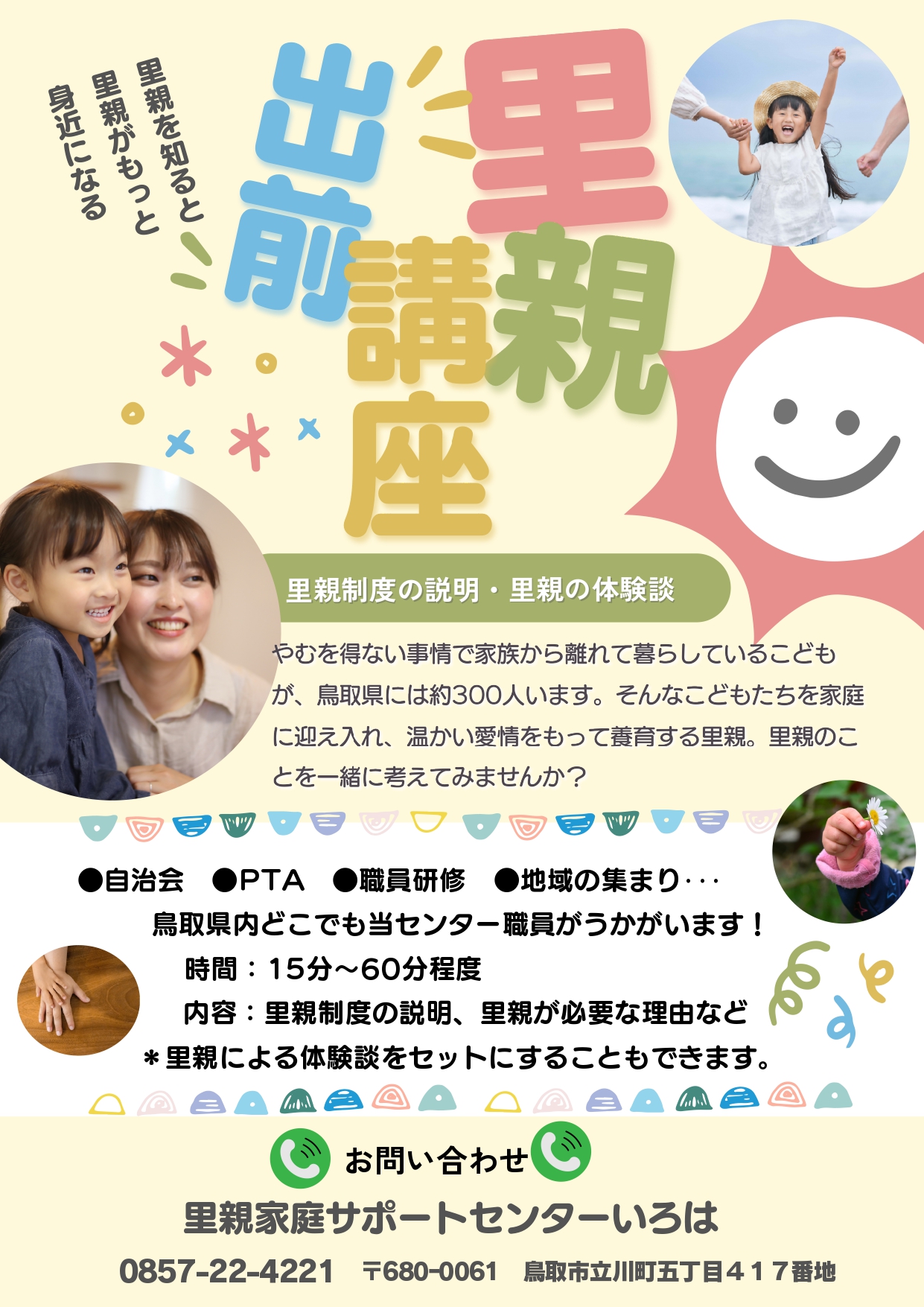 内容:里親制度の説明、里親が必要な理由など